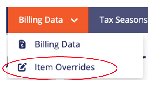 Note: This behavior only applies to accounts that have both MuniciPay and EscrowCloud. Item overrides are managed within the EscrowCloud billing data, so when an account has both products selecting Item Overrides from the MuniciPay platform will automatically transition you into the EscrowCloud platform. You will see this reflected at the top of the screen.
