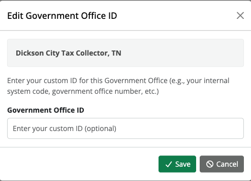 Follow the steps below to assign a custom internal ID to a tax office in your portfolio: