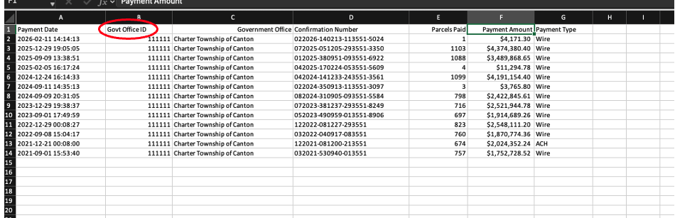It will be included on payment history report exports under the Government Office ID column.