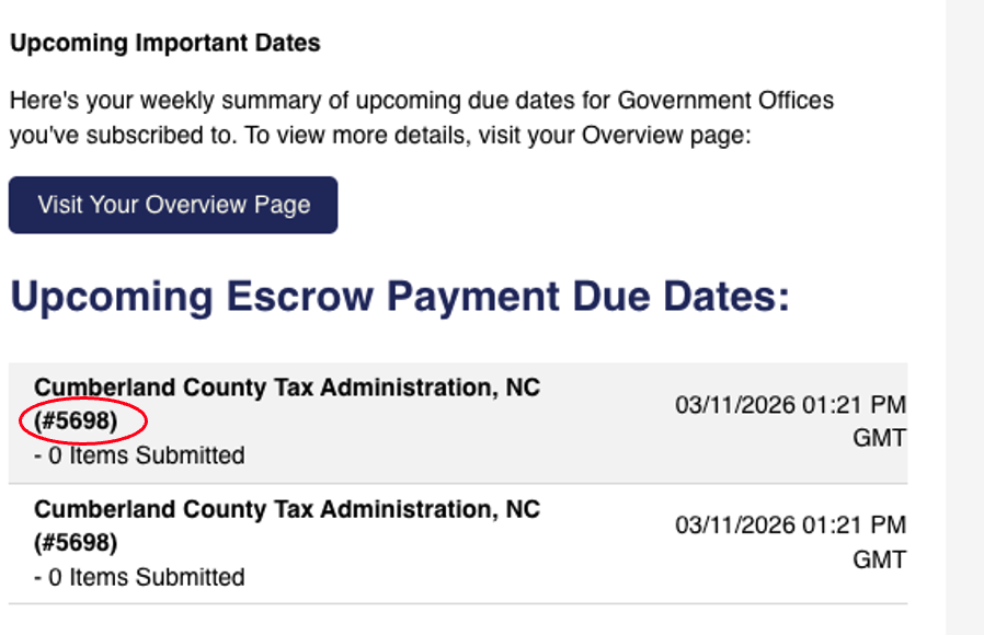 It will be listed under the tax office name in any reminders sent to you.